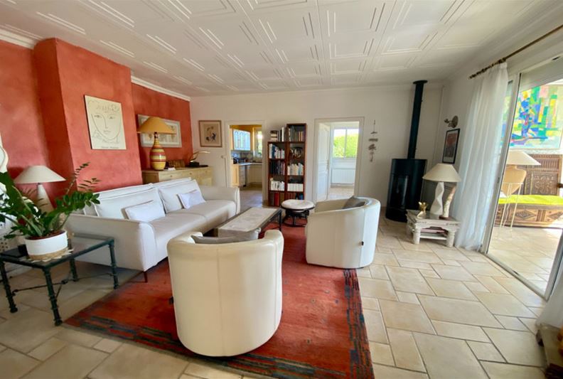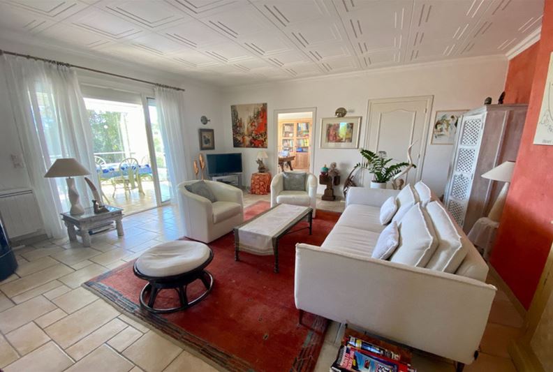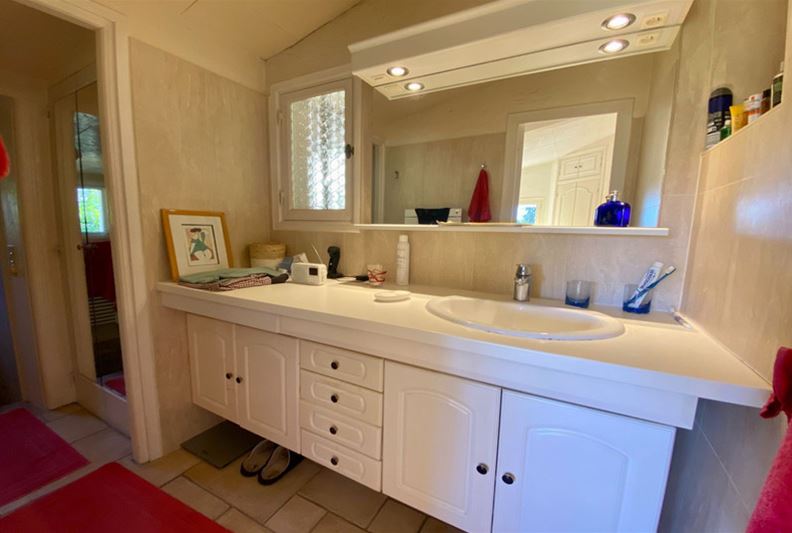 In a sought-after neighborhood of VENCE, in total tranquility and just steps from the town center, Charming villa mostly on one level, featuring an entrance hall, living room opening onto a veranda, equipped kitchen with pantry/laundry room, two bedrooms, one with a shower room/WC, an office with closets that can be converted into a third bedroom. On the garden level: a small separate apartment with shower room/WC and the possibility of a kitchenette. Two lovely terraces, swimming pool, jacuzzi, ornamental pond, carport, all set on a planted plot of approximately 1050 m².