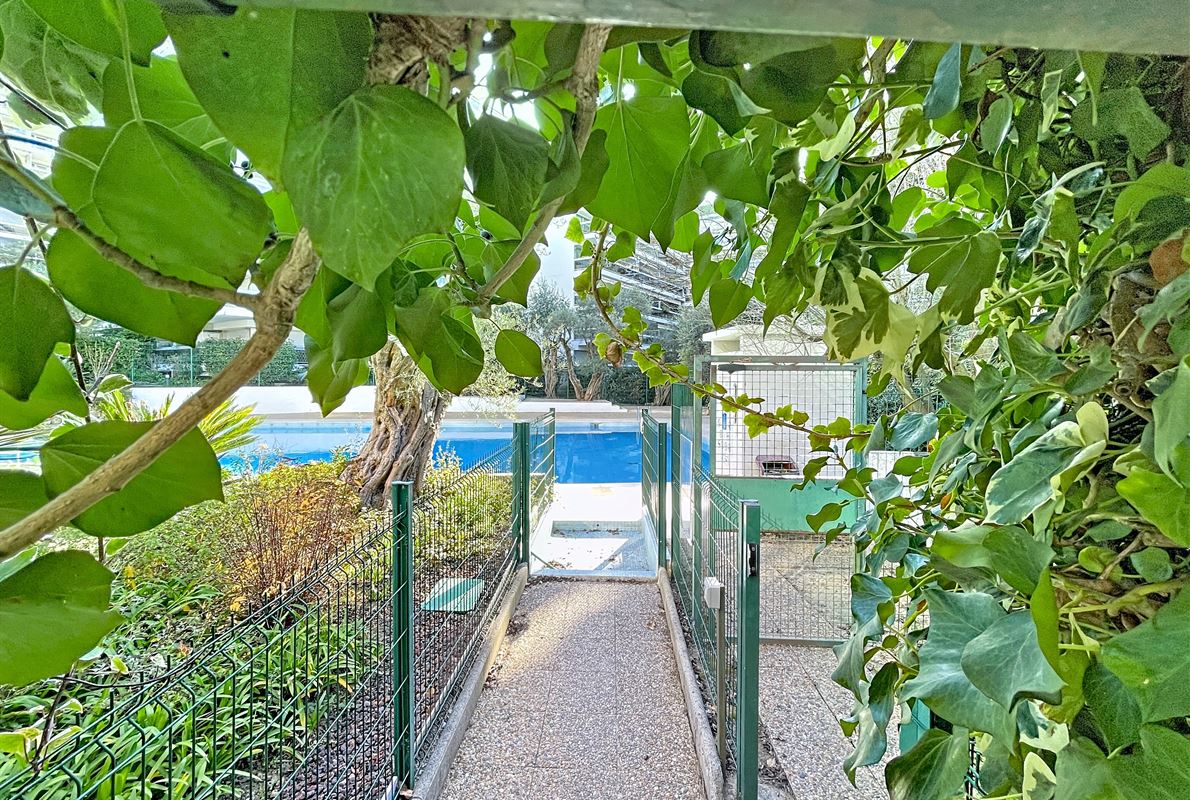 Located in a prestigious residence with a park, swimming pool, and caretaker, discover this superb 74 m2 two-bedroom apartment on the raised ground floor. It comprises a welcoming entrance hall, a living room with an open-plan fitted kitchen, two bedrooms, a shower room, and a separate WC. The major advantage: all rooms open onto a 52 m2 corner terrace. Enjoy the beaches of Juan-les-Pins (650m) and Ponteil (800m), as well as shops, all within walking distance. Sold with a garage.