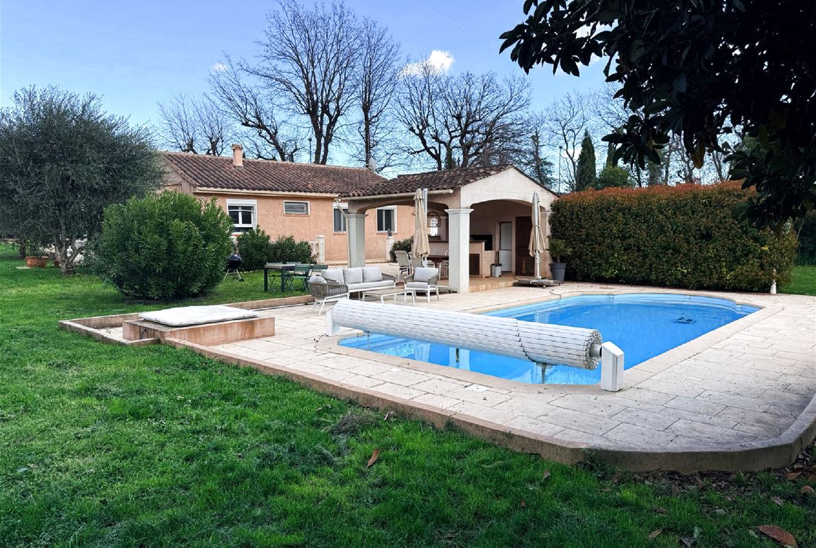 House of approximately 88 m², situated on a magnificent, flat, fully fenced plot of 2000 m² (with potential for expansion). The house comprises: an entrance hall, a fully equipped independent kitchen, a bright living/dining room, three comfortable bedrooms, a shower room and WC, and an attached garage and carport. The landscaped garden is a true haven of peace, ideal for enjoying sunny days. You will also find a beautiful 9 x 4 m saltwater swimming pool, perfect for relaxing with family and friends, complete with a lovely pool house and summer kitchen, as well as a pétanque court. The property also benefits from a well, supplying water for the swimming pool and the automatic garden irrigation system – a real advantage for maintenance.