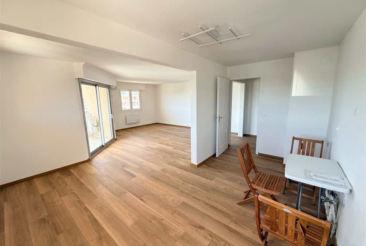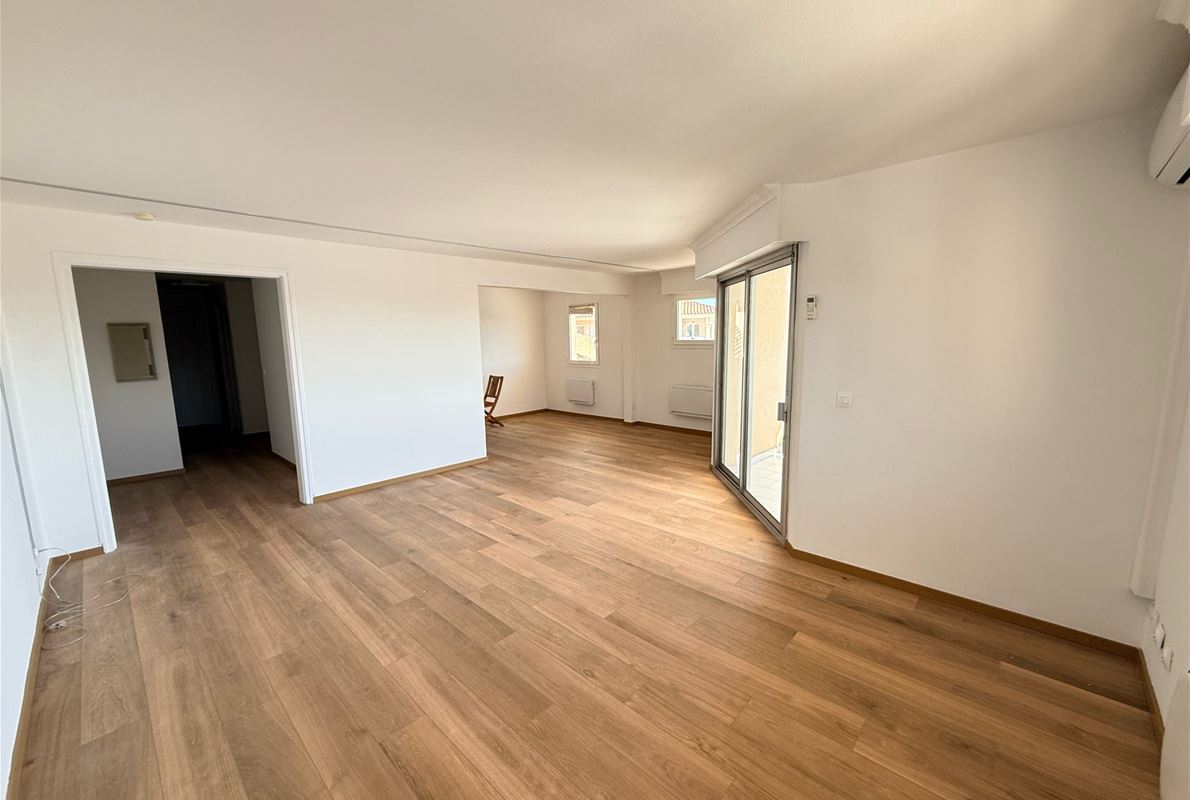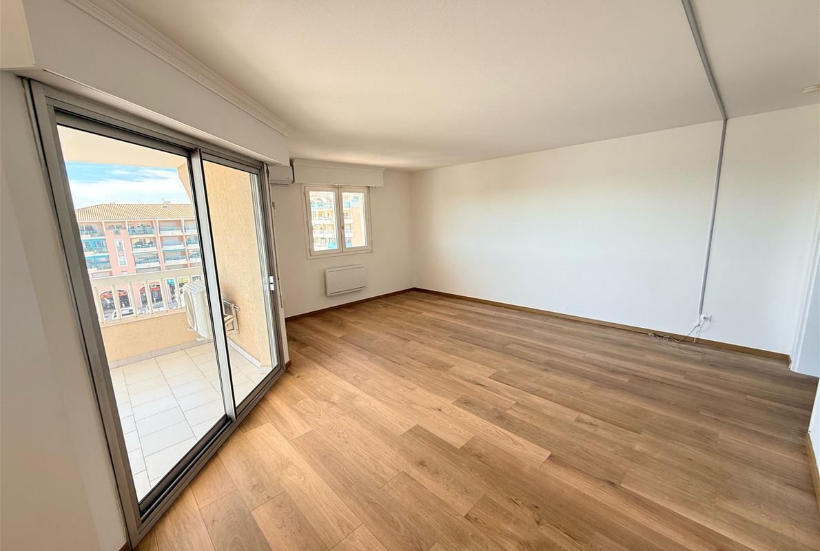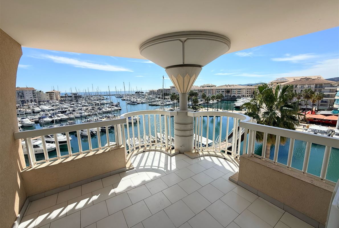 EXCEPTIONAL PORT VIEW for this 72m2 corner 2-bedroom apartment on the top floor (elevator) comprising an entrance hall with built-in wardrobe, a kitchen to be fitted and equipped opening onto the living room, a dressing room/pantry, two bedrooms, a shower room, and a separate WC. Terrace. Indoor parking.