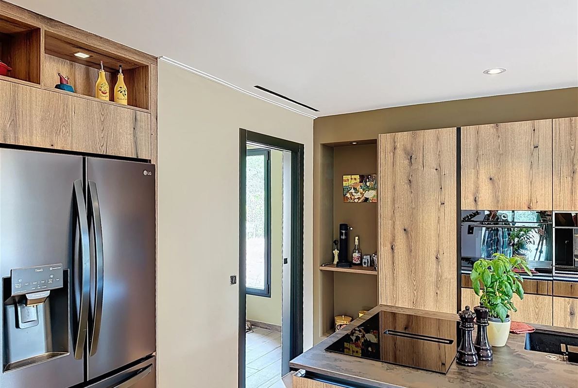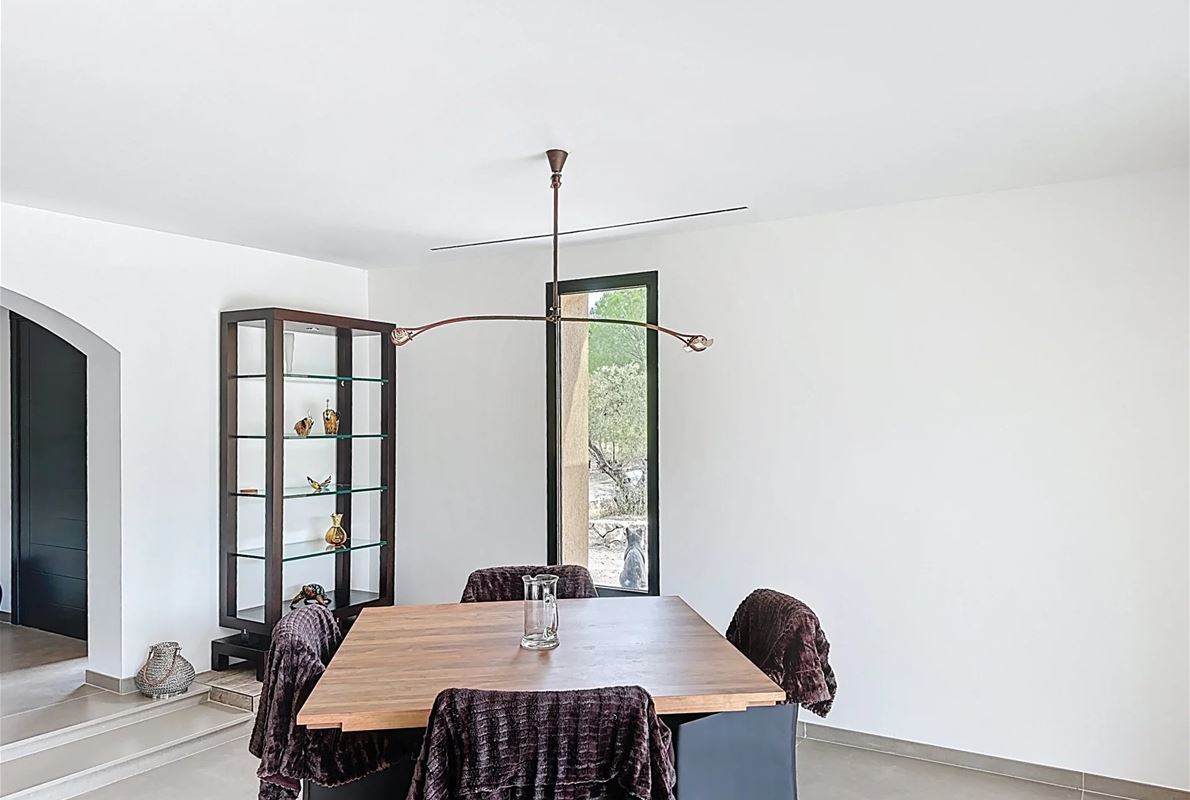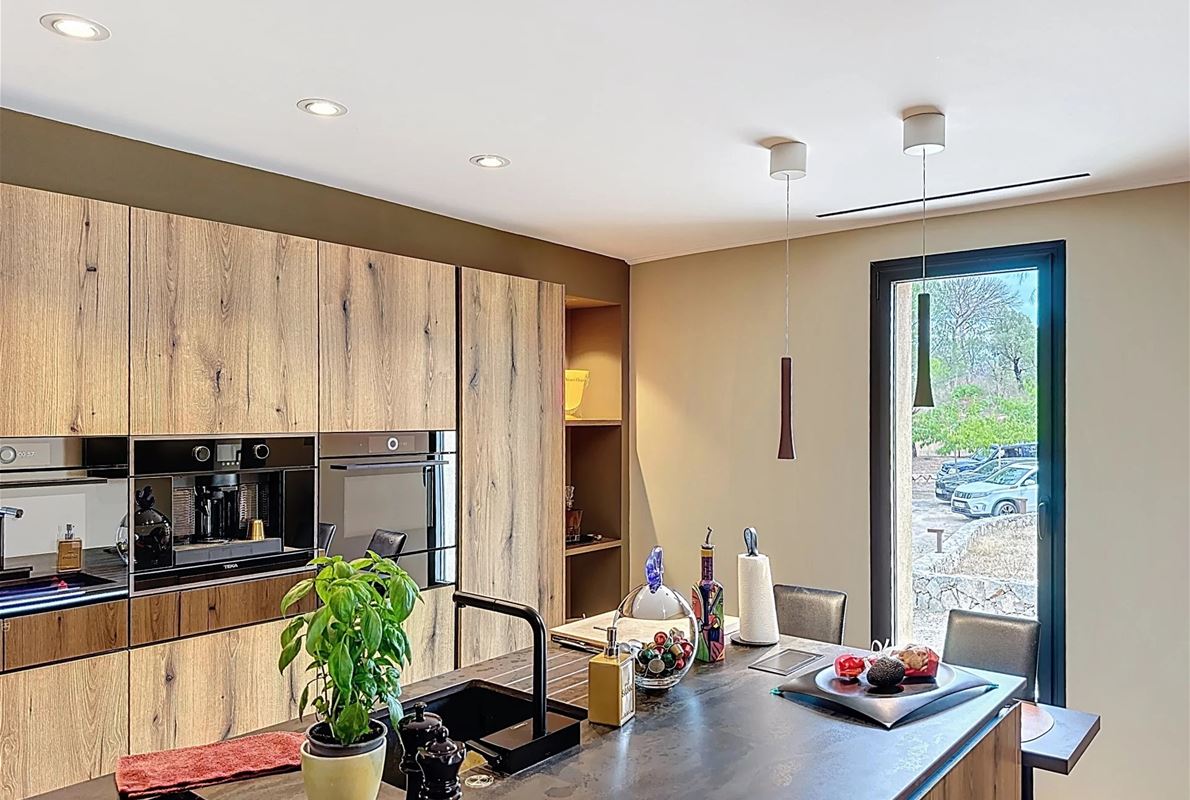 This renovated house is beautifully situated in a protected nature reserve. Located approximately 1 km from the main road, this house offers complete privacy and the assurance that no further construction will ever be permitted. Of the 2.5 hectares, approximately 4000 m² is fenced in, with the remaining land blending into the beautiful surroundings. The house has a beautiful entrance hall, a guest toilet and cloakroom, a very well-equipped kitchen, a spacious dining area with French doors opening onto the very spacious covered terrace with outdoor kitchen and fantastic views. Next to the kitchen is a very spacious utility room and a staircase leading to a spacious storage room. There is the possibility to build a swimming pool.