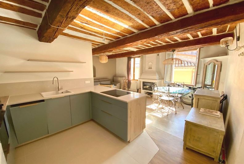 In the heart of the historic town, in a village house, On a high floor - charming apartment in perfect condition, including a living room with fireplace/insert, brand new equipped open kitchen, one bedroom with closets and a bathroom with toilet. - Recently renovated, full of character -