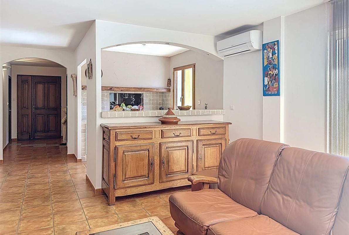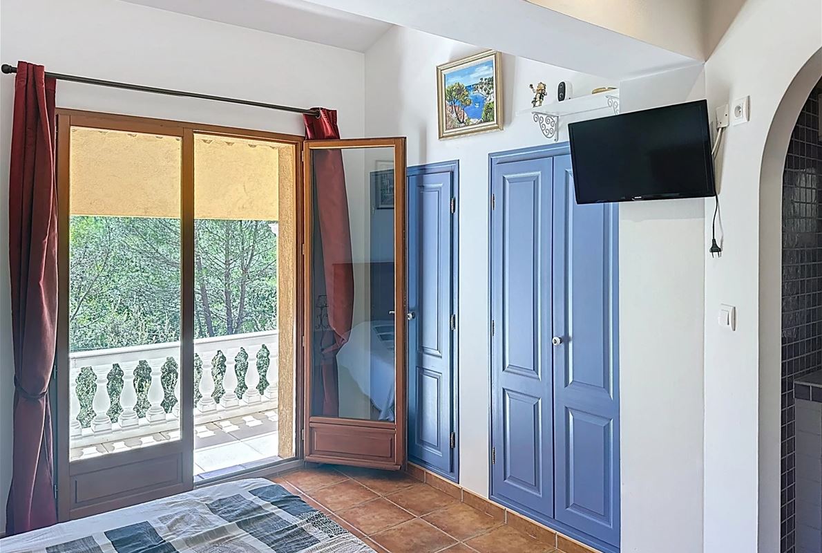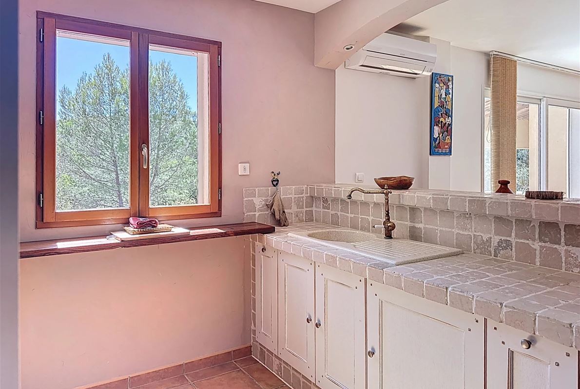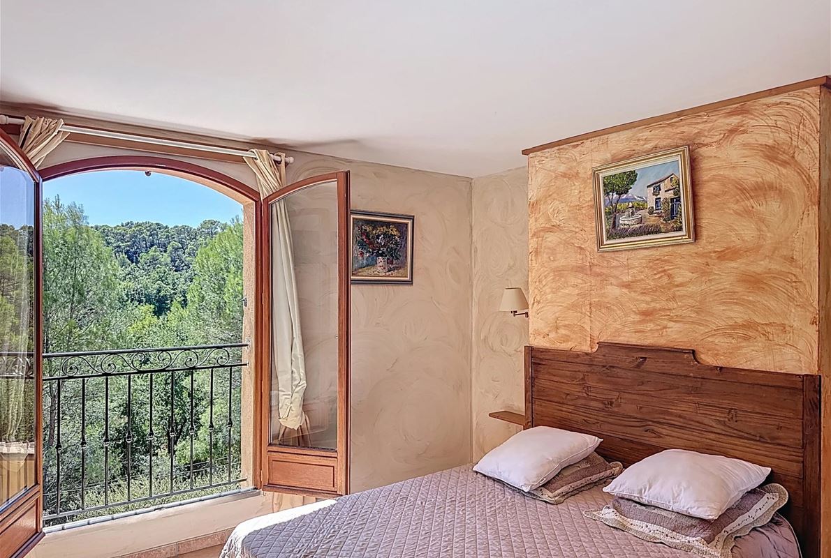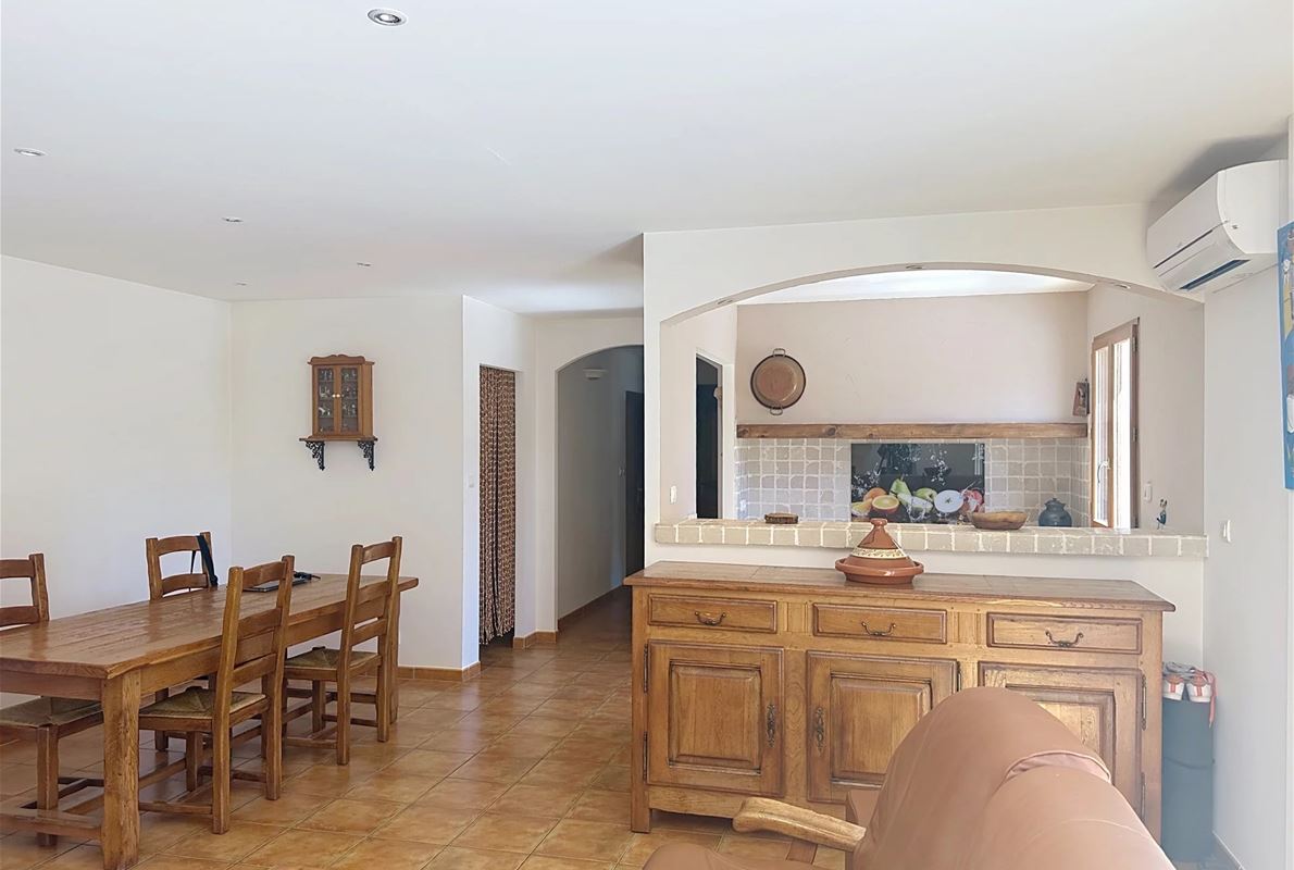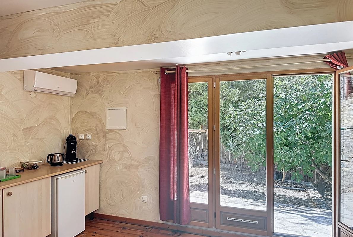 Just 5 km from thevillage of Lorgues. The property features an open kitchen and a bright living room that opens onto a large 70 m² terrace with stunning panoramic views. There are two comfortable bedrooms, each with its own private bathroom. In addition, there are four separate rooms with private bathrooms and private entrances, as well as two independent studios — perfect for quietly hosting family, friends, or other guests. A heated swimming pool (10 x 5 m) with sun terrace, pool house, and semi-professional outdoor kitchen Two jacuzzis, a sauna, and several relaxing seating areas scattered throughout the grounds A cozy room for relaxation or exercise Private access to the river with a pontoon and canoes