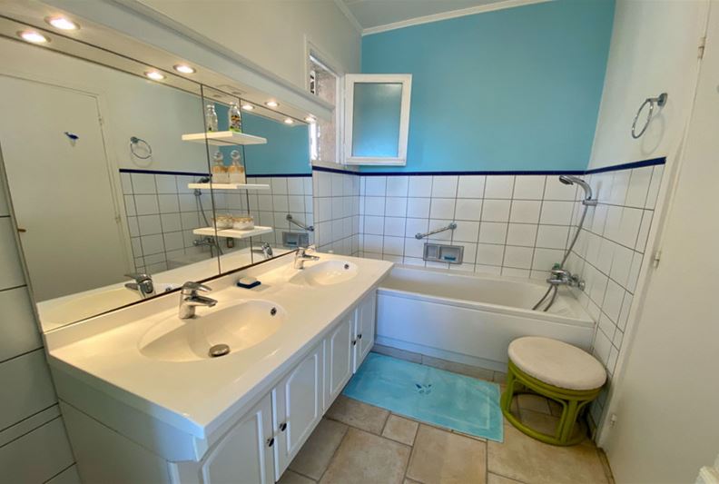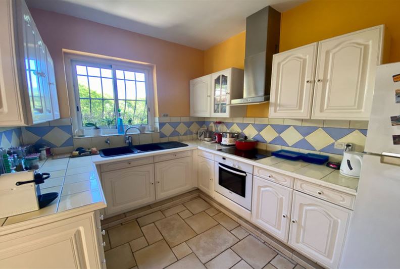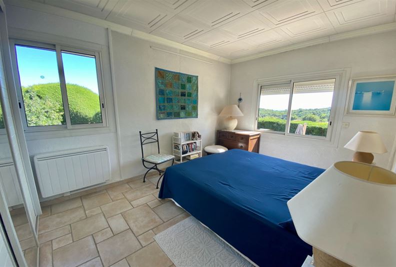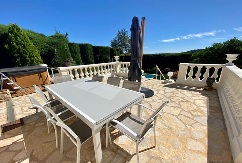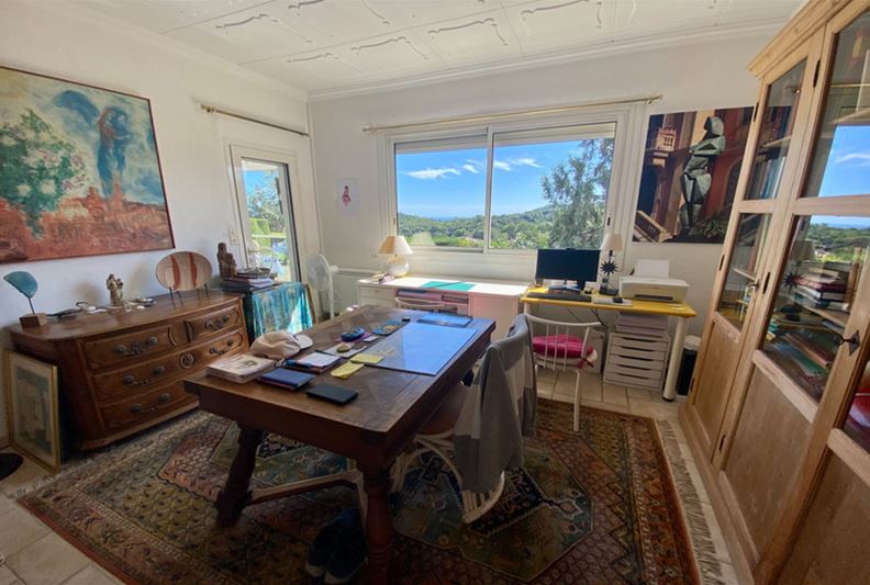 In a sought-after neighborhood of VENCE, in total tranquility and just steps from the town center, Charming villa mostly on one level, featuring an entrance hall, living room opening onto a veranda, equipped kitchen with pantry/laundry room, two bedrooms, one with a shower room/WC, an office with closets that can be converted into a third bedroom. On the garden level: a small separate apartment with shower room/WC and the possibility of a kitchenette. Two lovely terraces, swimming pool, jacuzzi, ornamental pond, carport, all set on a planted plot of approximately 1050 m².