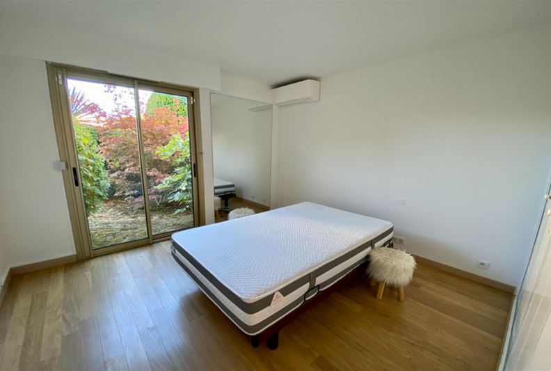 Close to downtown VENCE, in a quiet residential neighborhood, Pleasant ground-floor apartment in excellent condition, featuring an entrance hall with closets, living room, large independent equipped kitchen, two bedrooms with closets, shower room, and toilet. Lovely south-facing terrace, exceptional garden planted over approximately 330 m², cellar and private covered parking. - Opportunity to acquire the adjoining studio and convert into a 4-room apartment of 96 m² living space -