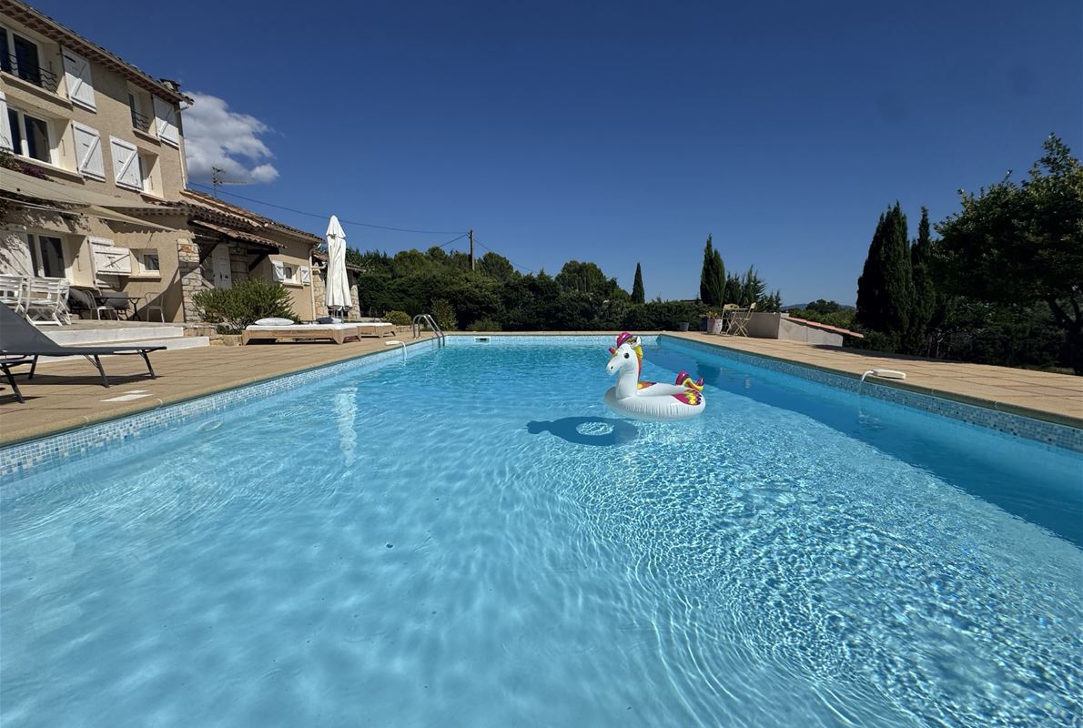 Fully renovated bastide offering 150 sq m of living space on a 4,651 sq m wooded plot. Interior layout: spacious and bright entrance hall, welcoming dining room with wood-burning stove, living room with fireplace and superb high ceilings, with an open mezzanine that could be used as an office. A fitted kitchen with adjoining utility room, two bedrooms on the ground floor, including a master suite with dressing room. Upstairs: A master suite with shower room and separate WC. On the top floor: A master suite with shower room and WC. Exterior & amenities: 6 x 12 m swimming pool with large sunny terrace, inviting pool house, carport, and several workshops. The land is divisible and buildable. Strong rental potential: approximately €10,000/month in high season.