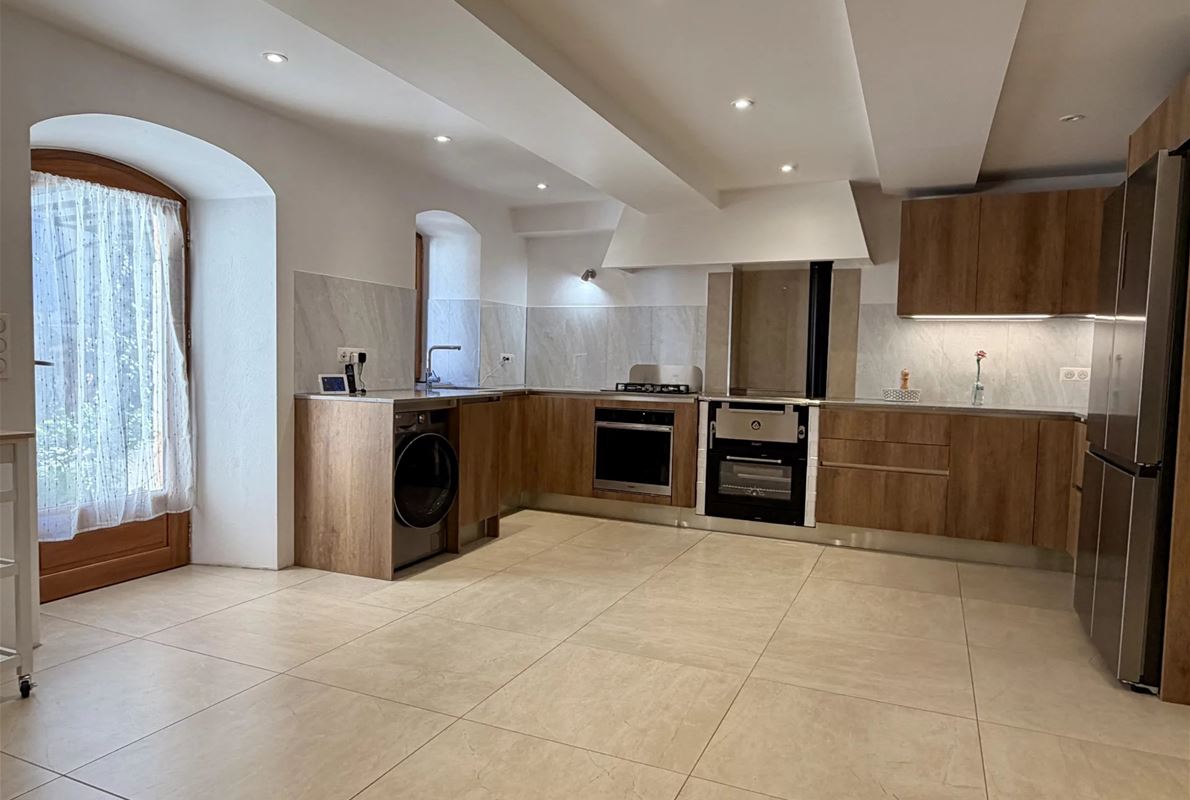 Village house, with a total surface area of ??142m², completely and meticulously renovated using high-quality materials. Ground floor: - Entrance onto a welcoming terrace, the main door opening onto a spacious, fully equipped kitchen and a comfortable dining room. - Vaulted living room, perfect for relaxing. - Shower room with shower and toilet. First floor: - Bright office space with access to a second sunny terrace. - Beautiful, spacious bedroom. - Separate toilet. Second floor: (Accessible from inside or via a separate entrance, offering the possibility of creating a second apartment) - Living room with a washbasin, ideal for entertaining. - Shower room with shower and toilet. Third floor: - Two charming attic bedrooms,
