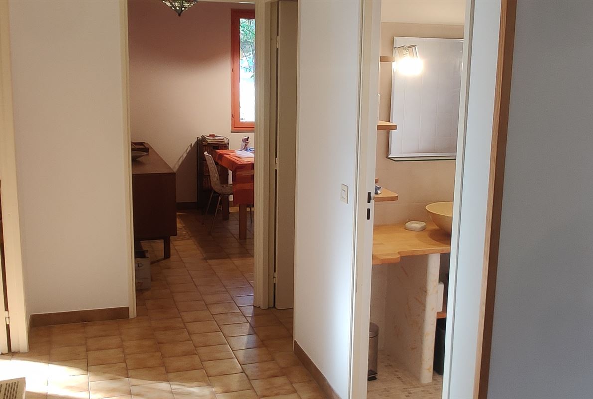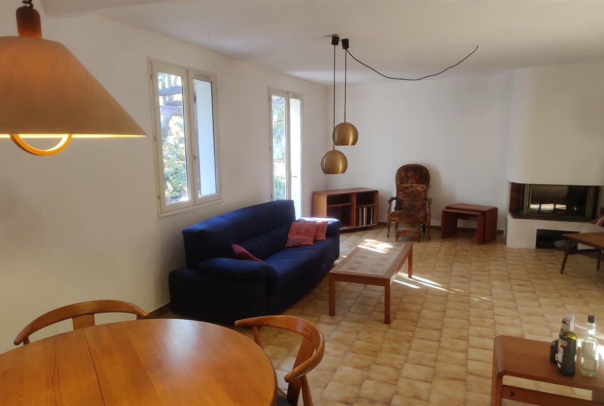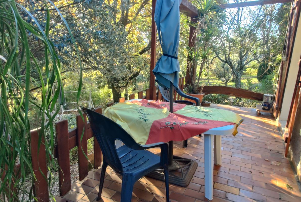 In a rural setting 20 minutes from Draguignan, this single-story villa of 90 sq m comprises a large living room with a fireplace opening onto a terrace, a fitted kitchen, two bedrooms with built-in wardrobes (possibility of a third bedroom), a shower room, a separate WC, and an entrance hall. A timber-framed shed/workshop completes the property. It enjoys a peaceful, elevated position on a beautiful 2670 sq m plot connected to mains drainage, with easy access and ample parking. Requires some updating.