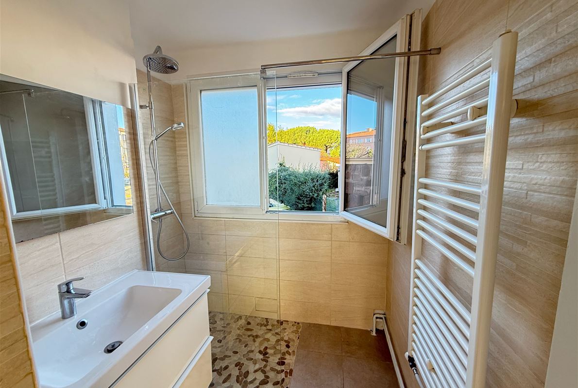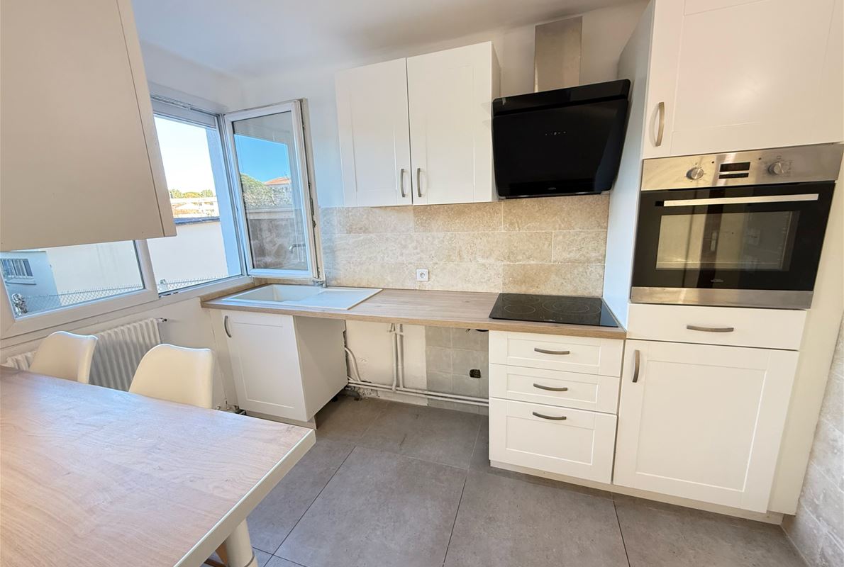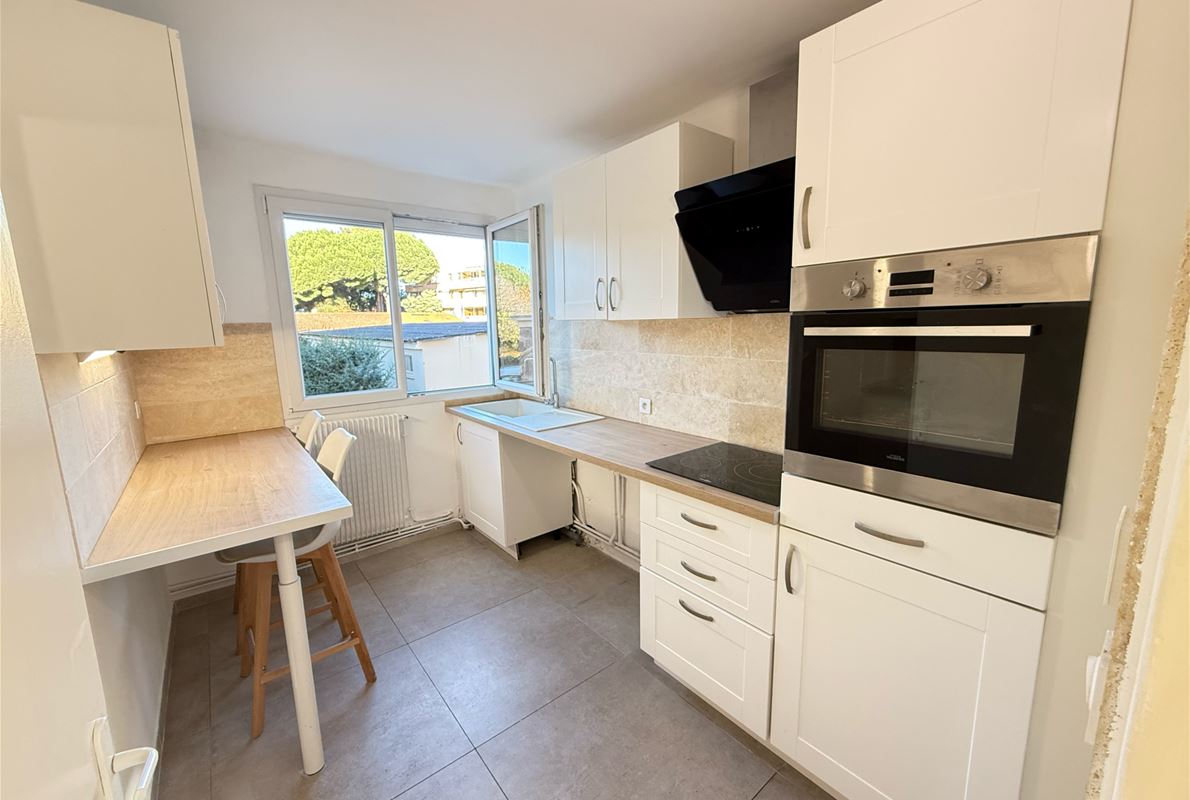 Between the town center and the beaches of Fréjus, this 70m² (approx.) 4-room apartment features an entrance hall with a built-in wardrobe, a separate fitted kitchen, a utility room, 3 bedrooms (2 with built-in wardrobes), and a living room opening onto a southeast-facing terrace. A cellar, private parking, and solar-powered roller shutters are also included.