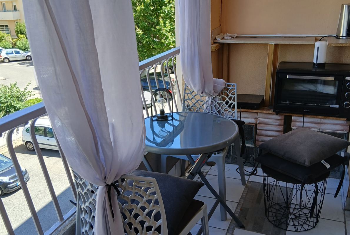 A bright, airy apartment, 500 meters from Fréjus beach and Saint-Raphaël town center, close to shops and public transport, in a secure residence. It comprises a separate, fully equipped kitchen with a covered terrace, a living/dining room opening onto a terrace, three bedrooms (one with terrace access and a dressing room), a bathroom with a window, a separate WC, and a hallway with a built-in wardrobe. Located on the 2nd floor (no elevator). Electric heating. A cellar and a private parking space complete this property.