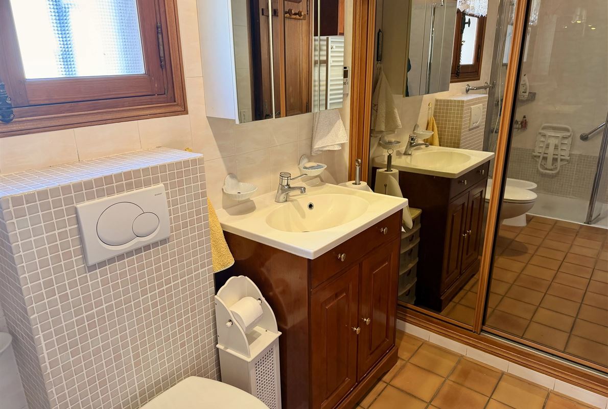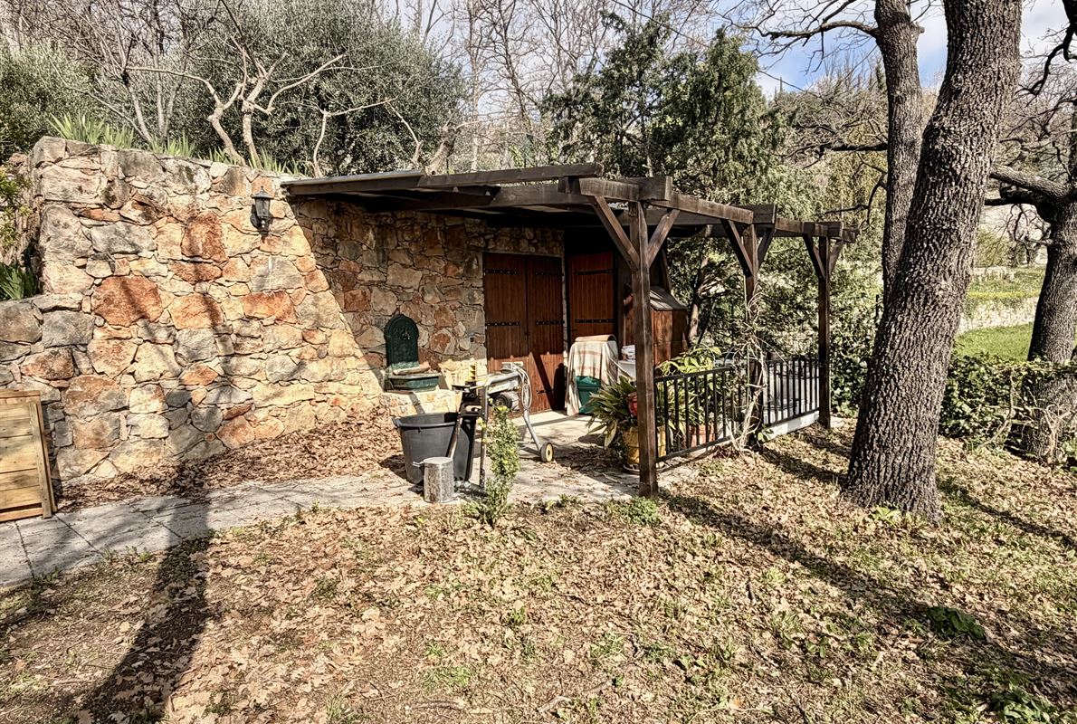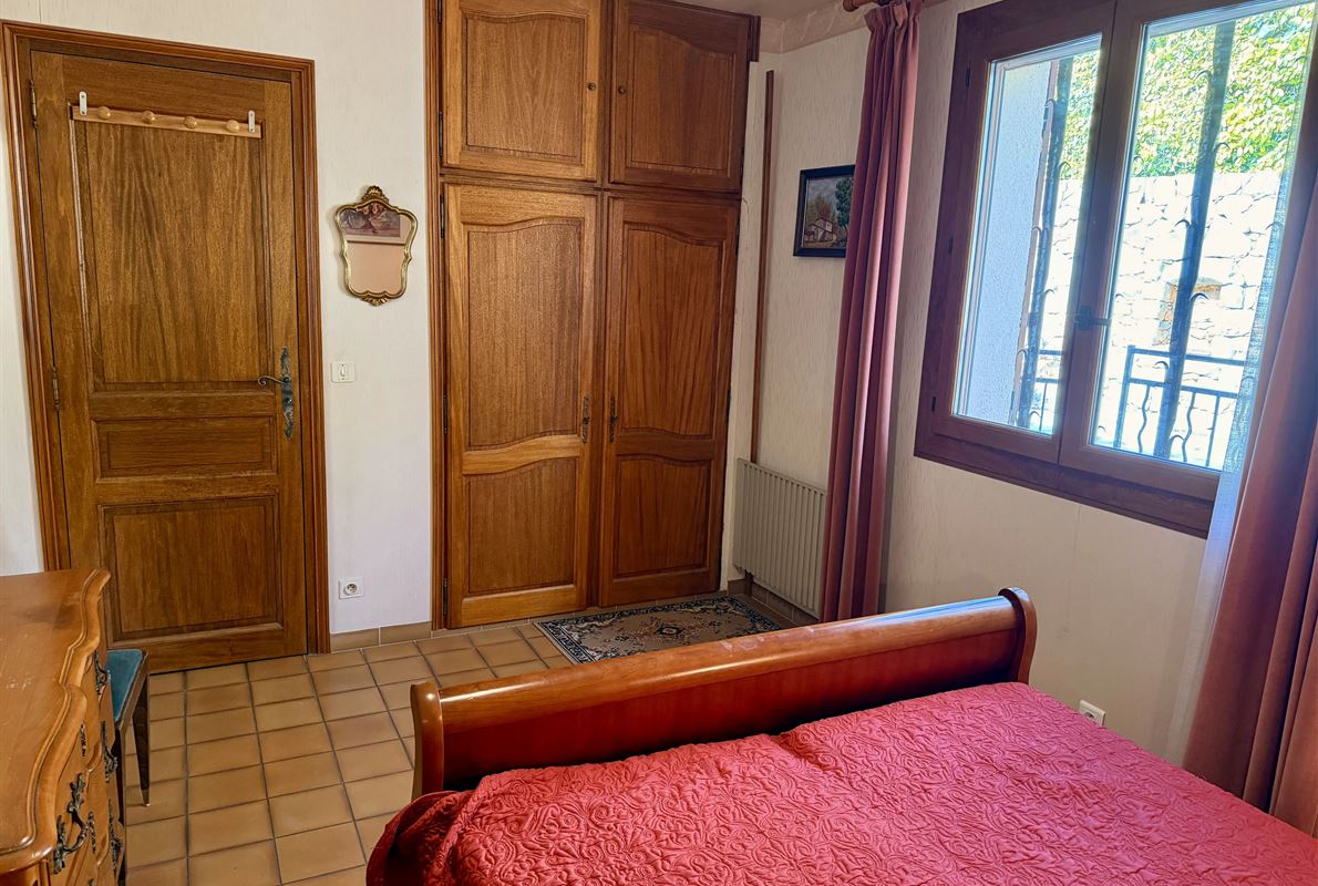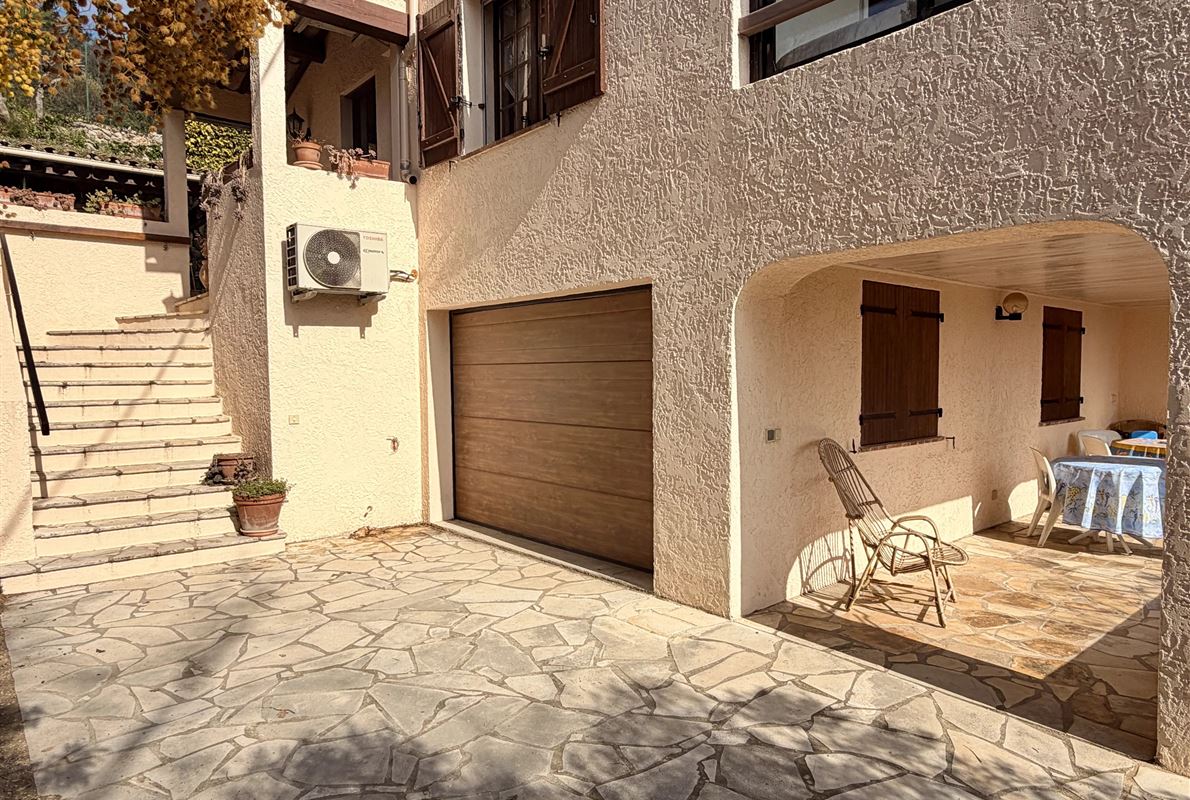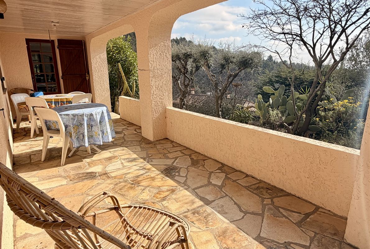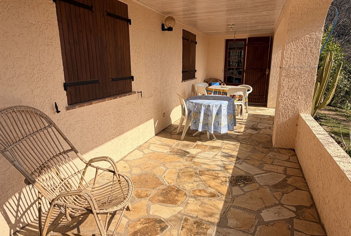 villa built in 1982, on enclosed and landscaped plot. Ideally located on elevated ground, the property enjoys a beautiful unobstructed view over the surrounding area while being within walking distance of the village, restaurants, and shops. The main villa comprises: Ground floor: Porch and entrance hall Guest WC with dressing area Spacious living room with fireplace insert, opening onto a pleasant veranda Fully equipped kitchen Two bedrooms with built-in wardrobes Dressing room Shower room with WC Garden level: An independent apartment including: Living room with open-plan kitchen, opening onto a covered terrace Two bedrooms Shower room with WC Adjoining this space: Garage with automatic door Cellar Laundry room