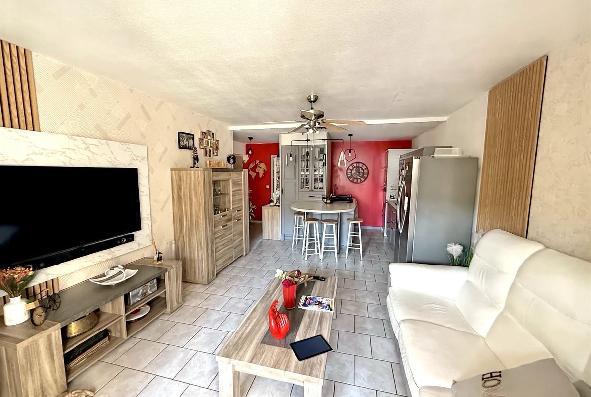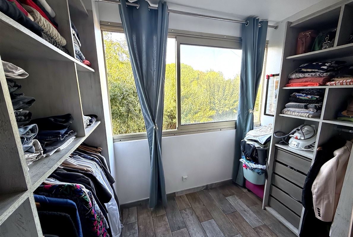 In a gated community close to major roads and the center of Fréjus, in a quiet location, this 60.65 sq m (650 sq ft) 2-bedroom apartment is located on the 1st floor. It comprises an entrance hall with a cloakroom, a fully equipped kitchen opening onto the living room, two bedrooms (one with a dressing room), a shower room with a window, and a separate WC. A cellar is included. Free parking is available within the community.